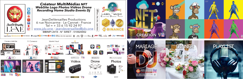 JeanDeVersailles Productions - Créateur Multimédia - DJ Producteur - Apple Teacher - Consultants Crypto NFT - Cannes - Tel : 0615922497 www.jdv.one - Marque Déposée INPI ®2019 #jeandeversailles #djfrenc #music #dukemonaco #hits #jdv #monaco #events #Bitcoin #blockchain #nft #cryptomonnaies #Web3 #blockchain #investing #consultants #teacher #professionnelles #expert #metaverse