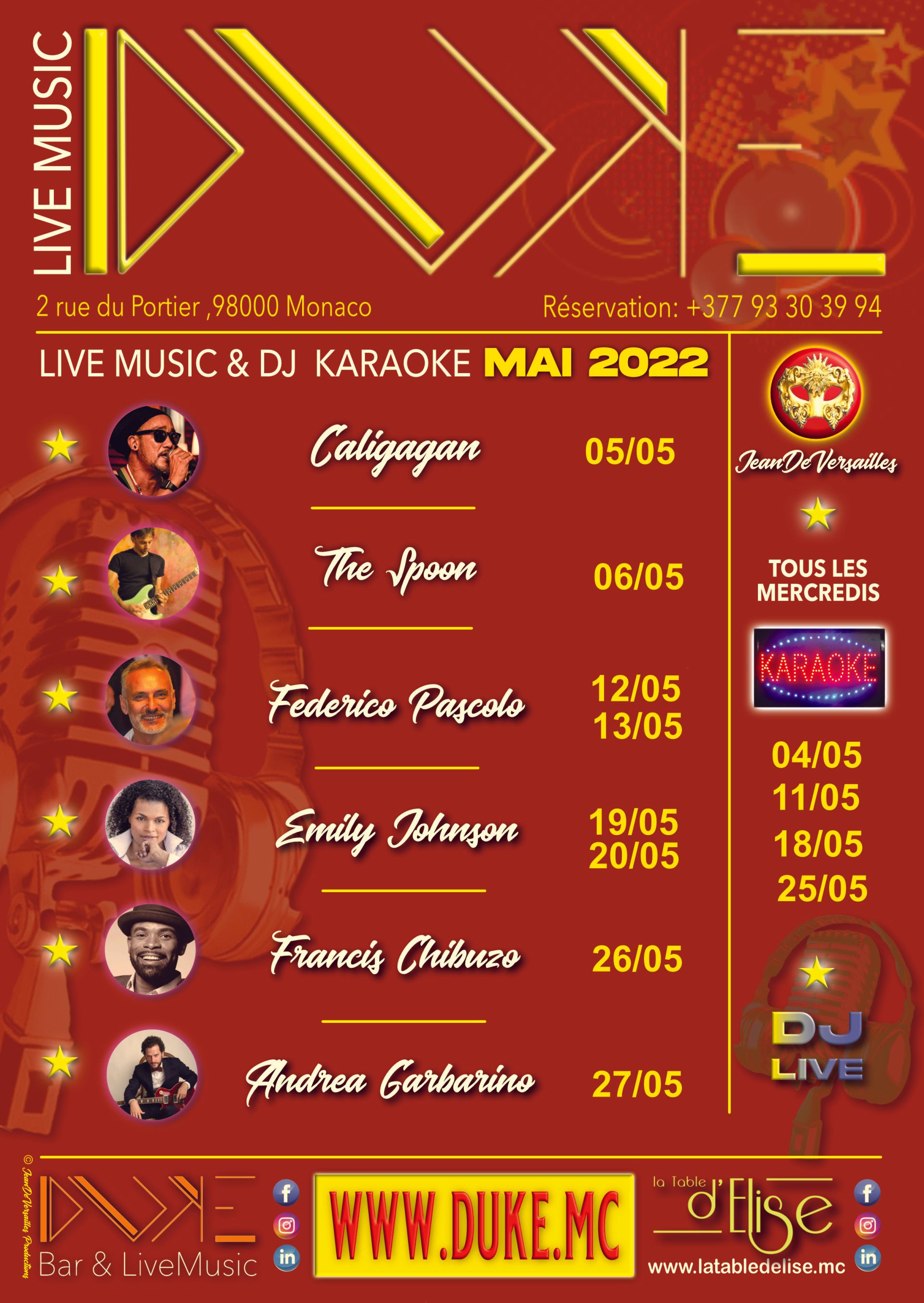 Les activités événementielles reprennent, alors anticipez en nous confiant l'organisation de vos évènements, DJ KARAOKE LIVE MUSIC au DUKE à MONACO Événement MAI 2022 Monaco Duke .